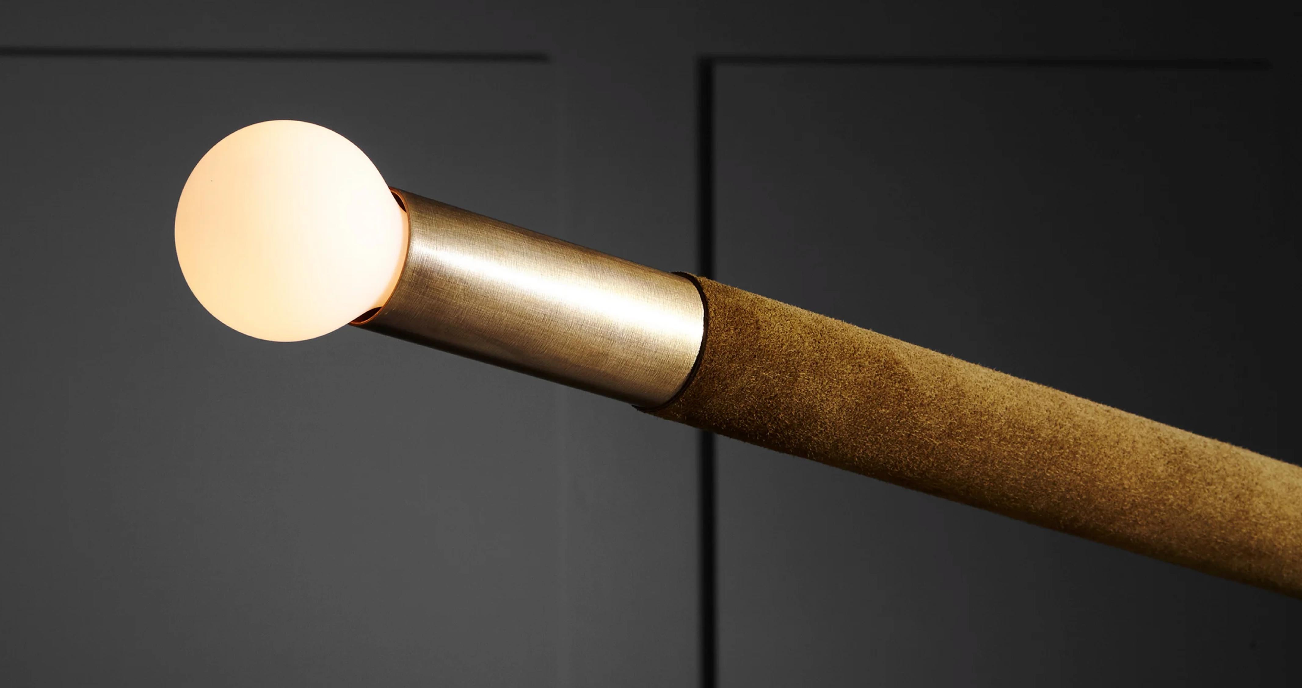 This fixture is a staple for us at the studio. It's elegant approach captures you attention immediately upon entering a room. This "small" version is still large enough for a bedroom, breakfast nook and plenty other applications. Although the Arrow Pendant comes in an array of beautiful finishes our favorite is the Aged Brass with Bronze Suede.